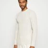 - Our model’s height: Our model is 6′ 1″ tall and is wearing size M