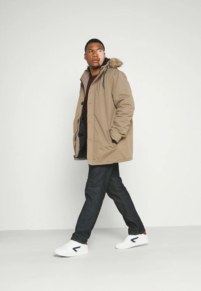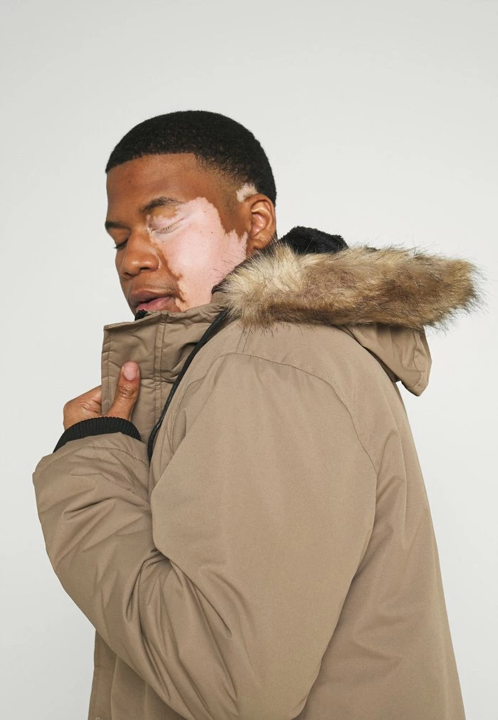 - Hood detail: Drawstring, lined, removable faux fur collar